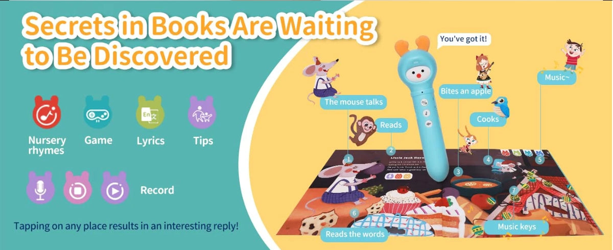 1. Talking Pen (Rääkiv pastapliiats): See võluv vahend sisaldab juba 37 laulu, 25 muinasjuttu ja 15 hällilaulu. See avab teadmiste maailma ja põnevad lood. Justkui võti, üks puudutus ja helid, sõnad ja fraasid elustuvad, muutes õppimise kaasahaaravaks.