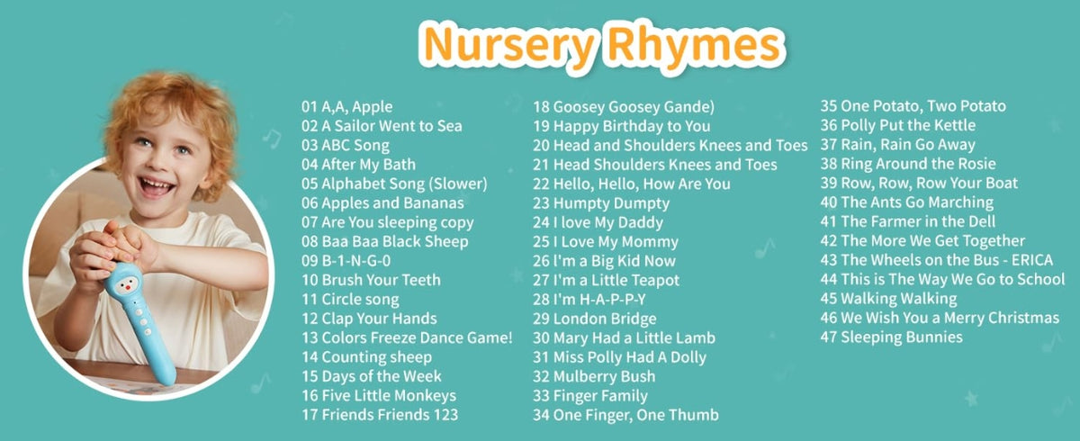 🔅 Piiramatud võimalused: Kõnelevate pliiatsite komplekt sisaldab 45 klassikalist lasteluuletust ja 100 kognitiivset kaarti. Lapsed saavad õppida numbreid ja lugemist läbi lõbusa lähenemise. Samuti aitab see parandada nende värvide äratundmise ja loogilise mõtlemise oskust.