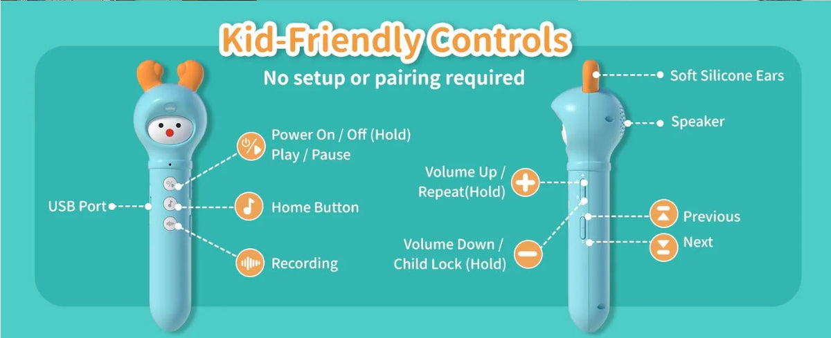 🔅 6h aku kestvus: Sisseehitatud 660mAh aku; rääkiv pliiats võib kestma jääda umbes 6 tundi. Lihtsalt suunake rääkiv pliiats piltidele, tähtedele või kleebistele, et taasesitada muusikat, helisid või helisalvestusi.